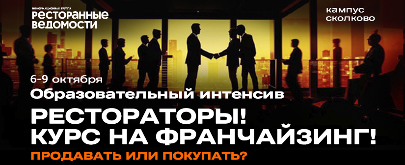 С 6 по 9 октября в Сколково пройдет образовательный интенсив «Рестораторы! Курс на франчайзинг! Продавать или покупать?» от Информационной группы «Ресторанные ведомости» и программного партнёра международной консалтинговой компании Like4Like.