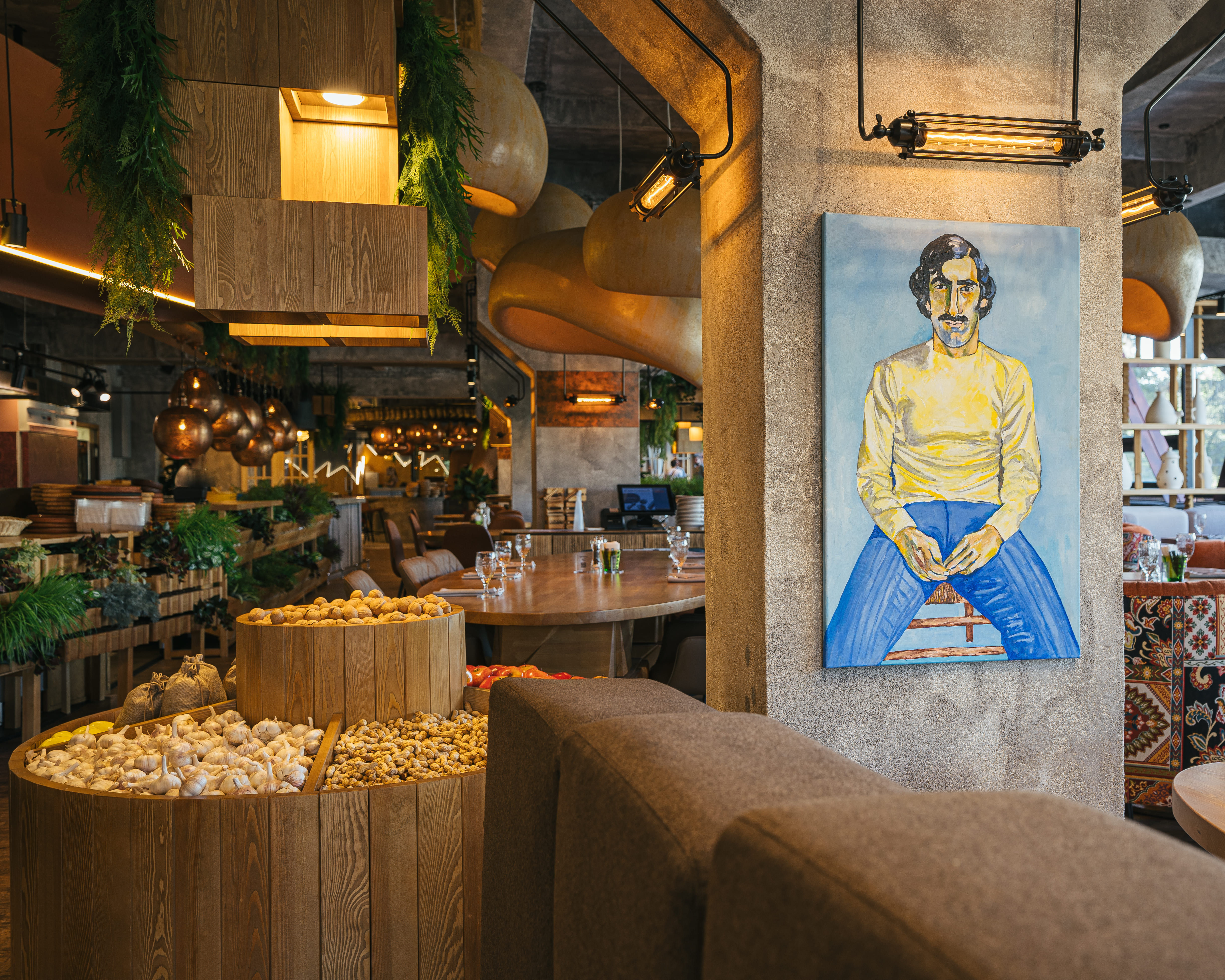 Атмосфера уютной Италии подчеркивается обилием деталей: в интерьере присутствует аутентичная посуда и домашняя утварь, что делает ресторан по-настоящему теплым, семейным и домашним. Видовые окна ресторана выходят на сквер и площадь. Среди обилия зелени, фресок с сюжетами Боттичелли и сценами из Крестного отца можно найти множество интересных элементов, которые способен удивить даже самого взыскательного гостя.